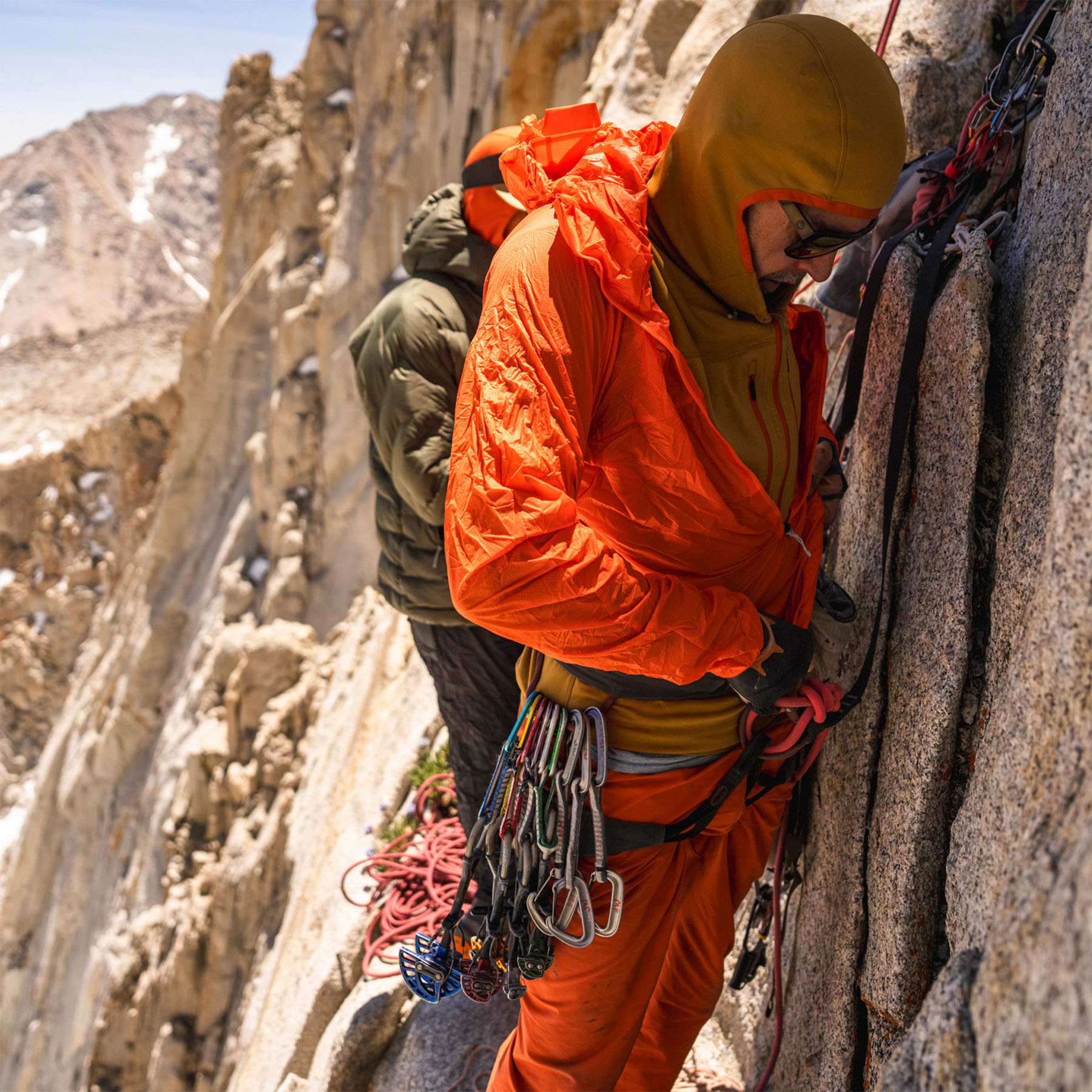 Patagonia’s iconic Houdini Jacket has been reimagined for serious climbers. The Houdini Rock Jacket is wind- and weather-resistant, offering unmatched overhead mobility and a long, slim-fit waist that stays securely under a harness. Engineered specifically for multipitch rock climbing, this jacket is part of the Free Wall Kit, designed for sustained, difficult routes where even the smallest rest restores just enough energy for the send.