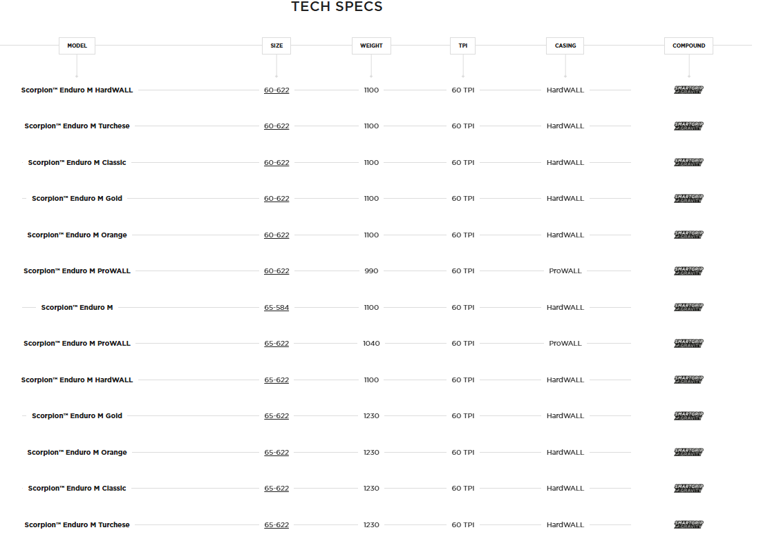 Technical details of the Pirelli Scorpion Enduro M folding tire