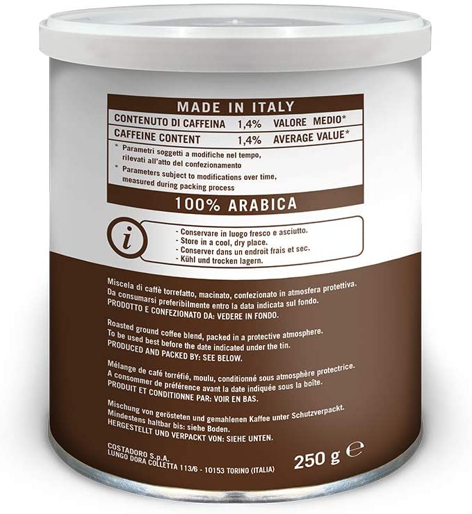 Начин на приготвяне: 5-7g Costadoro кафе за всеки 40-50 ml вода в кафеварката.