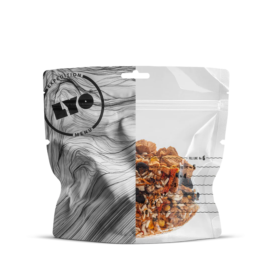 Лека и функционална опаковка: Опаковката е лека и удобна за приготвяне на LYO ястията директно вътре в нея.