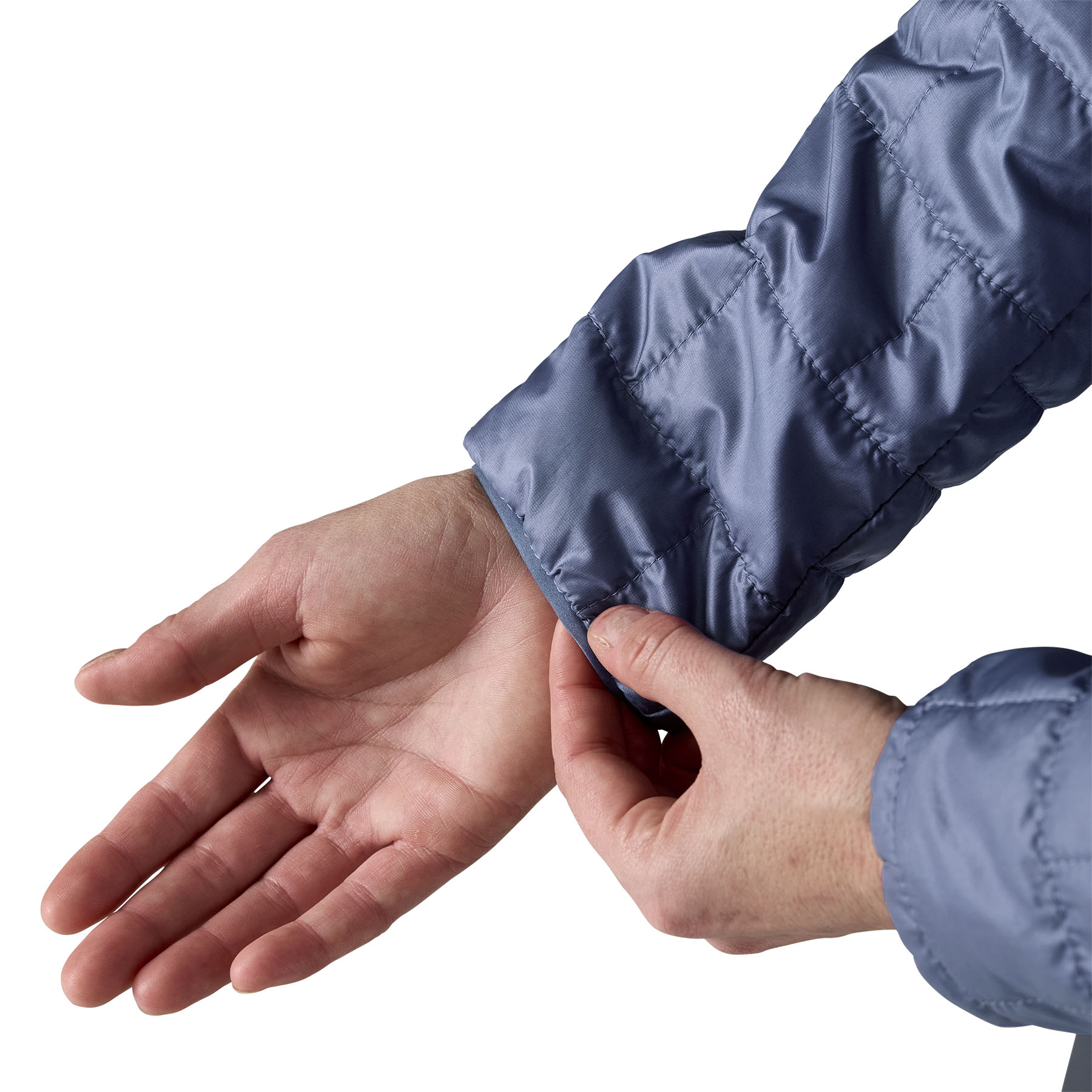 Топлото и устойчиво на вятър и вода яке Nano Puff® Hoody разполага с невероятно лека и силно компресираща се изолация 60-g PrimaLoft® Gold Insulation Eco със 100% рециклирано съдържание с P.U.R.E.™ (Produced Using Reduced Emissions) технология, опакована в обвивка от 100% рециклиран полиестер.